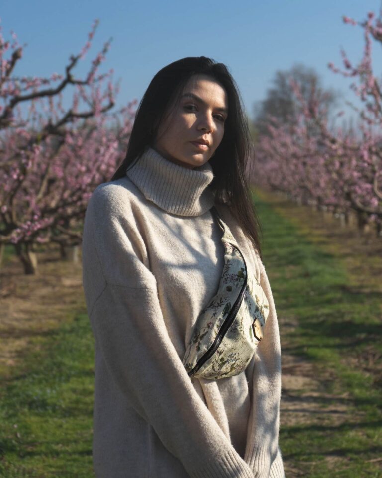J’ai pris la taille M et je l’adore : grâce à elle, tous mes essentiels (passeport, téléphone, moyens de paiement) sont immédiatement accessibles quand je voyage avec un sac à dos ! La contenance est suffisante pour transporter en plus une bouteille d’eau de 50 cl et ma liseuse. Pour ne rien gâcher, l’imprimé floral est ravissant. Seul bémol, il lui manque une poche intérieure. J’ai commandé la mienne en juillet et elle n’a pas encore été ajoutée, c’est un peu dommage mais ca reste un super produit, que je recommande vivement ! Le service client est comme toujours au top